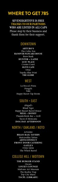 “But where can I get one?!” you ask? Read it online at seveneightfive.com or pick up a print copy at one of these local businesses: